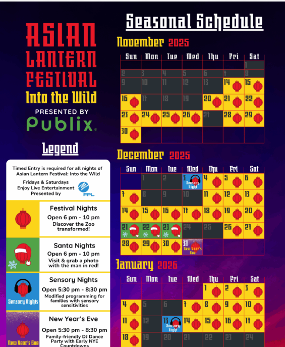 Now – 1/18 Asian Lantern Festival – click here for their FB event page (beautiful photos of event). Central Florida Zoo and Botanical Gardens – 3755 W. Seminole Blvd, Sandford, FL 32771. Click here for their web page.