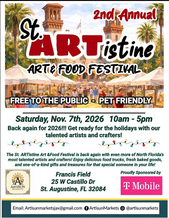To make it easier to see the Activities on the Calendar by date (see below) I have moved the helpful info for Caddyshack, St Johns County services, Alhambra, Limelight, Lightner, K&B/S&S, COA, the AMP, FL Dept of Transportation, Sales Tax Holidays and more. AND SUMMER CONCERTS: St. Augustine Pier and Plaza; Conch House, Daytona Bandshell, Emma … Click on the **Helpful Links-More Events** page above (or click here).