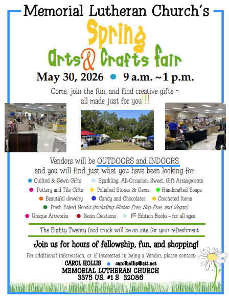 4/25 Grand Oaks 8am-1pm: (west of Windward Ranch. Entrance is on SR-16 – if you add this address in your GPS it will get you there … 1055 Turnbull Creek Road, St. Augustine, FL 32092 ) (Note: Grand Oaks is also hosting a First Coast Vendor Village on Saturday, May 2, from 11 am to 2 pm with arts & crafts vendors, food trucks, Cottage Bakers, small business vendors, etc. – same address)