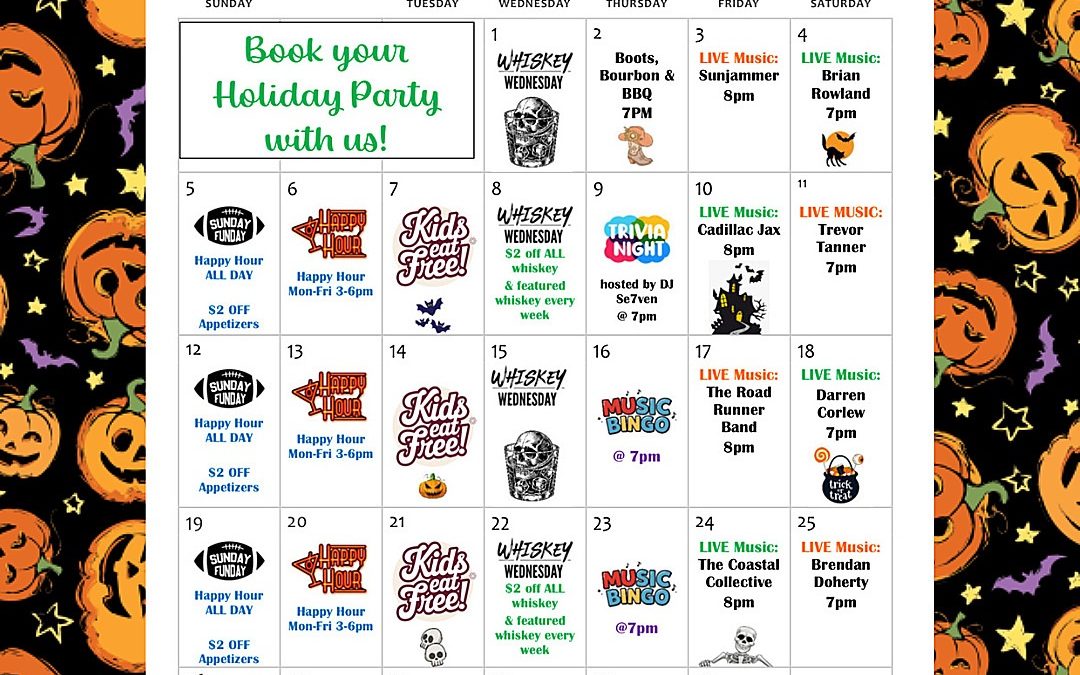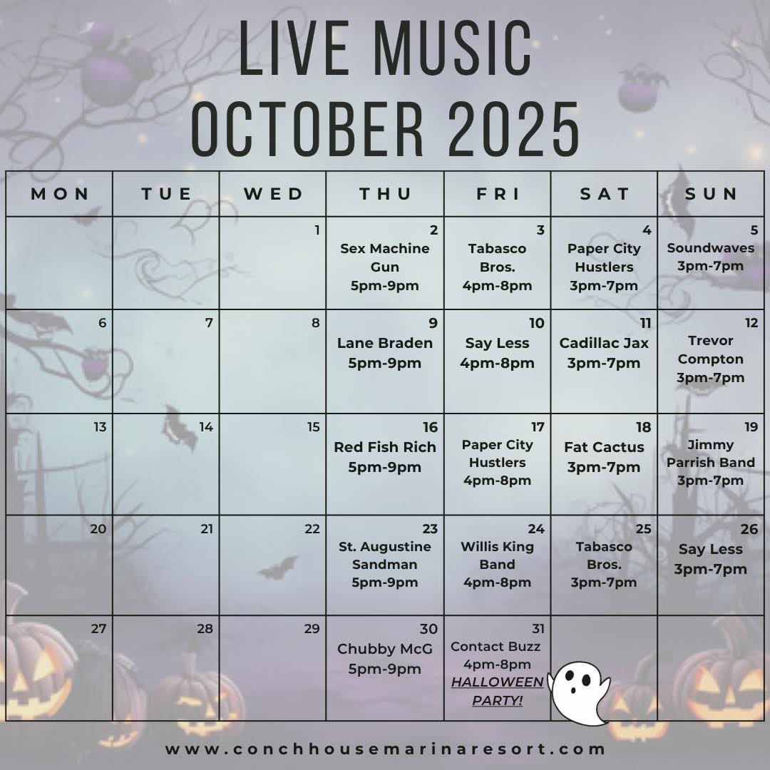 Conch House – click here for their FB page. Live Music schedule / 2025 – October